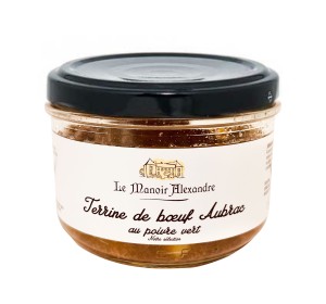 Gorge et foie de porc origine: France, viande de boeuf race Aubrac origine: France 24%, oeuf entier, sel, poivre vert 0,2%.